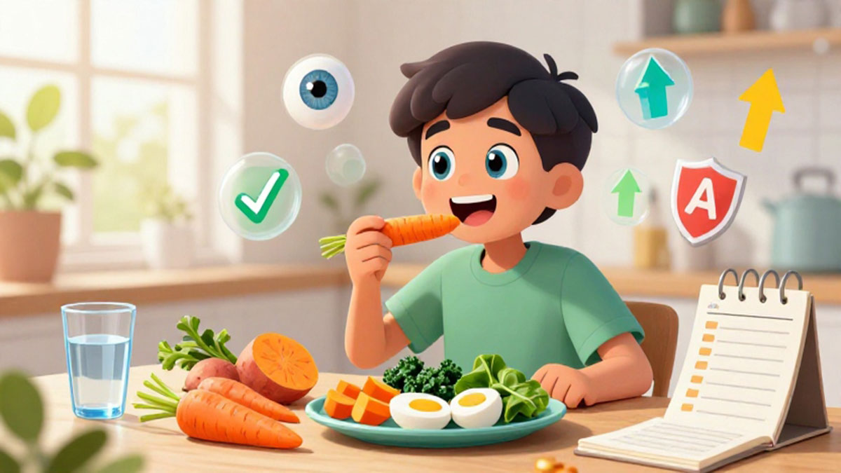 Vitamin A dikenal sebagai nutrisi penting yang berperan dalam menjaga fungsi retina serta membantu mata beradaptasi terhadap cahaya. Kekurangan vitamin A dapat menyebabkan berbagai masalah mata seperti rabun senja, mata kering, hingga menurunnya kemampuan penglihatan. Oleh karena itu, menjaga asupan vitamin A setiap hari menjadi langkah sederhana namun efektif untuk melindungi kesehatan mata.